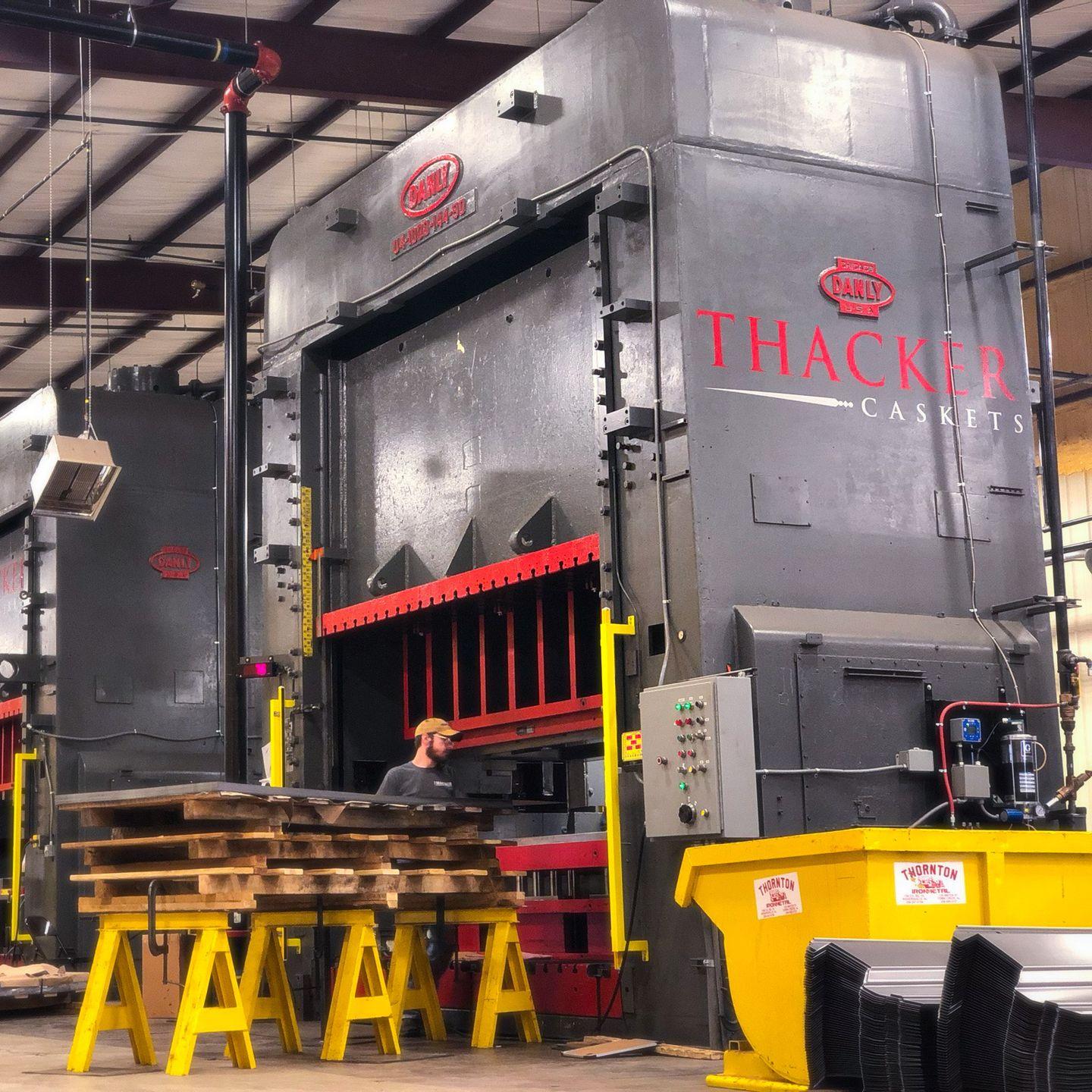 The year 2019 culminated a three-year and $3.5 million dollar investment for Thacker to begin stamping its own metal casket parts. The Thacker family decided to pursue this heavy investment in order to ensure its long-term ability to serve funeral directors and continue to grow its business.